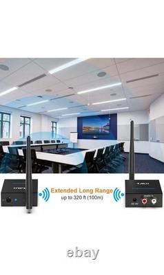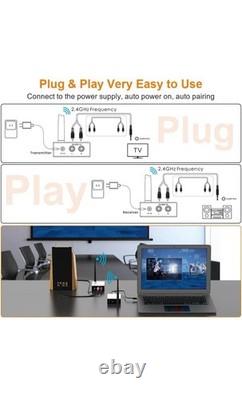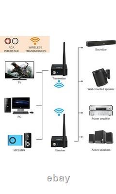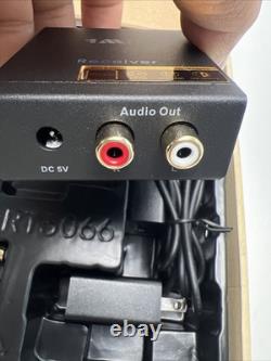 1Mii 3-in-1 2.4GHz Wireless Audio Transmitter and Receiver for TV, 2 Receivers for Two Speakers. This set is an open box. It looks like it was used once. 2 cables have been cut to be used in speakers.